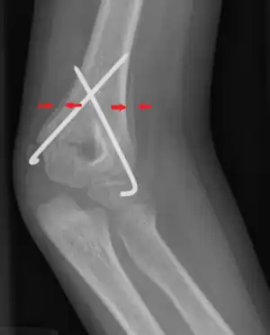 Periosteal reaction on a healing supracondylar fracture | |