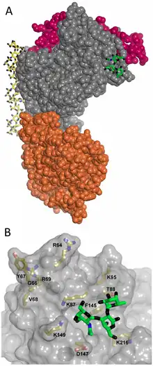 - 1 2 Vigan-Womas I, Guillotte M, Juillerat A, Hessel A, Raynal B, England P, Cohen JH, Bertrand O, Peyrard T, Bentley GA, Lewit-Bentley A, Mercereau-Puijalon O (2012). "Structural basis for the ABO blood-group dependence of Plasmodium falciparum rosetting". PLOS Pathogens. 8 (7): e1002781. doi:10.1371/journal.ppat.1002781. PMC 3395597. PMID 22807674.