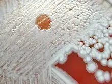Phage therapy is being used to great effect in the treatment of biofilm infections, especially Pseudomonas aeruginosa and Staphylococcus aureus.[90][91] From 78 recent cases of treatment of biofilm infections, 96% of patients saw clinical improvement using phage therapy, and 52% of patients saw complete symptom relief or a full expungement of the affecting bacteria.[90] Biofilm infections are very challenging to treat with antibiotics. The biofilm matrix and surrounding bacterial membranes can bind to the antibiotics, preventing them from penetrating the biofilm. The matrix may contain enzymes that deactivate antibiotics. Biofilms also have low metabolic activity, which means antibiotics that target growing processes have much lower efficacy. These factors make phage therapy an enticing option for the treatment of such infections, and there are currently two ways to go about such treatment. The first is to isolate the initial bacteria and make a specific treatment phage to target it, while the second way is to use a combination of more general phages.[91] The advantage of the second method is that it can easily be made commercially available for treatment, although there are some concerns that it may be substantially less effective. [90]