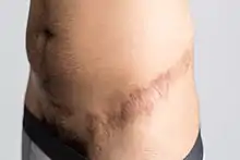 Temporary lengthening can also be gained by a procedure that releases the suspensory ligament where it is attached to the pubic bone, thereby allowing the penis to be advanced toward the outside of the body. The procedure is performed through a discreet horizontal incision located in the pubic region where the pubic hair will help conceal the incision site. However, scar formation can cause the penis to retract. Therefore, the American Urological Association "considers the division of the suspensory ligament of the penis for increasing penile length in adults to be a procedure which has not been shown to be safe or efficacious."[8][9]