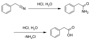 - ↑ Adams R.; Thal, A. F. (1922). "Phenylacetic acid". Organic Syntheses. 2: 59; Collected Volumes, vol. 1, p. 436.