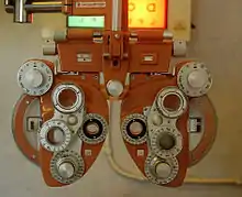 - ↑ Dictionary.com, Definition of "phoropter", American Heritage Stedman's Medical Dictionary. Retrieved 10-10-10.