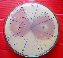 Phosphate solubilizing bacteria (PSB) are beneficial bacteria capable of solubilizing inorganic phosphorus from insoluble compounds.[1] P-solubilization ability of rhizosphere microorganisms is considered to be one of the most important traits associated with plant phosphate nutrition. It is generally accepted that the mechanism of mineral phosphate solubilization by PSB strains is associated with the release of low molecular weight organic acids, through which their hydroxyl and carboxyl groups chelate the cations [an ion that have positive charge on it.] bound to phosphate, thereby converting it into soluble forms. PSB have been introduced to the Agricultural community as phosphate Biofertilizer. Phosphorus (P) is one of the major essential macronutrients for plants and is applied to soil in the form of phosphate fertilizers. However, a large portion of soluble inorganic phosphate which is applied to the soil as chemical fertilizer is immobilized rapidly and becomes unavailable to plants.[2] Currently, the main purpose in managing soil phosphorus is to optimize crop production and minimize P loss from soils. PSB have attracted the attention of agriculturists as soil inoculums to improve the plant growth and yield. When PSB is used with rock phosphate, it can save about 50% of the crop requirement of phosphatic fertilizer. The use of PSB as inoculants increases P uptake by plants. Simple inoculation of seeds with PSB gives crop yield responses equivalent to 30 kg P2O5 /ha or 50 percent of the need for phosphatic fertilizers. Alternatively, PSB can be applied through fertigation or in hydroponic operations. Many different strains of these bacteria have been identified as PSB, including Pantoea agglomerans (P5), Microbacterium laevaniformans (P7) and Pseudomonas putida (P13) strains are highly efficient insoluble phosphate solubilizers. Recently, researchers at Colorado State University demonstrated that a consortium of four bacteria, synergistically solubilize phosphorus at a much faster rate than any single strain alone.[3] Mahamuni and Patil (2012) isolated four strains of phosphate solubilizing bacteria from sugarcane (VIMP01 and VIMP02) and sugar beet rhizosphere (VIMP03 and VIMP 04). Isolates were strains of Burkholderia named as VIMP01, VIMP02, VIMP03 and VIMP04. VIMP (Vasantdada Sugar Institute Isolate by Mahamuni and Patil) cultures were identified as Burkholderia cenocepacia strain VIMP01 (JQ867371), Burkholderia gladioli strain VIMP02 (JQ811557), Burkholderia gladioli strain VIMP03 (JQ867372) and Burkholderia species strain VIMP04 (JQ867373).[4]