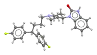 Pimozide, sold under the brand name Orap among others, is a medication used to treat schizophrenia and Tourette syndrome.[1][2] In Tourette's it is used when other treatments such as haloperidol are not effective.[2] It is taken by mouth.[2]