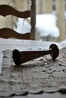A Pinard horn is a type of stethoscope used to listen to the heart rate of a fetus during pregnancy. It is a hollow horn, often made of wood or metal, about 8 inches (200 mm) long. It functions similarly to an ear trumpet by amplifying sound. The user holds the wide end of the horn against the pregnant woman's abdomen, and listens through the other end.[1]