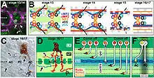 Guidepost cells are specialized early differentiating sensory cells. These cells are essential in providing navigational information to pioneer axons. Arrays of pioneer neurons create short segments of pioneer axons extending distal to proximal within an appendage. The resulting trajectories are due to pioneer axons growing from guidepost to guidepost cells. In addition, pioneer axons can act as guidepost cells to more distant pioneer neurons.[1] Studies that involved selective destruction of guidepost cells resulted in pioneer axons becoming unable to navigate normally to the CNS from the PNS. Instead, the pioneer axons assumed alternate configurations and followed different trajectories. In addition, without the guidepost cells, the pioneer axons did not find the stereotyped route that pioneer axons would normally navigate.[2]