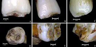 Example of an individual with plane-form enamel hypoplasia. From a British Roman site.[1]