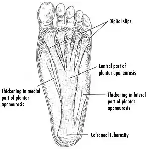 - ↑ Ehrmann C, Maier M, Mengiardi B, Pfirrmann CW, Sutter R (September 2014). "Calcaneal attachment of the plantar fascia: MR findings in asymptomatic volunteers". Radiology. 272 (3): 807–14. doi:10.1148/radiol.14131410. PMID 24814176.