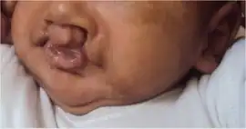 - Facial findings: cleft palate with or without cleft lip (75%), pits in the lower lip (40%), fibrous bands in the mouth known as syngnathia (25%), and tissue connecting the upper and lower eyelids