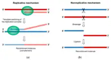 - ↑ Rawson JM, Nikolaitchik OA, Keele BF, Pathak VK, Hu WS (November 2018). "Recombination is required for efficient HIV-1 replication and the maintenance of viral genome integrity". Nucleic Acids Research. 46 (20): 10535–10545. doi:10.1093/nar/gky910. PMC 6237782. PMID 30307534.
