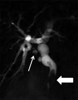 - 1 2 Okoro N, Patel A, Goldstein M, Narahari N, Cai Q (July 2008). "Ursodeoxycholic acid treatment for patients with postcholecystectomy pain and bile microlithiasis". Gastrointestinal Endoscopy. 68 (1): 69–74. doi:10.1016/j.gie.2007.09.046. PMID 18577477.
