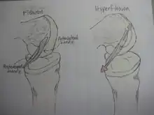 In this position, the PCL functions to prevent movement of the tibia in the posterior direction [7][13] and to prevent the tilting or shifting of the patella.[14] However, the respective laxity of the two sections makes the PCL susceptible to injury during hyperflexion, hyperextension,[15] and in a mechanism known as a dashboard injury.[9] Because ligaments are viscoelastic (p. 50 [16]) they can handle higher amounts of stress only when the load is increased slowly (p. 30 [16]). When hyperflexion and hyperextension occur suddenly in combination with this viscoelastic behavior, the PCL deforms or tears.[15] In the third and most common mechanism, the dashboard injury mechanism, the knee experiences impact in a posterior direction during knee flexion toward the space above the tibia.[10][15] These mechanisms occur in excessive external tibial rotation and during falls that induce a combination of extension and adduction of the tibia, which is referred to as varus-extension stress,[10] or that occur while the knee is flexed.[15]