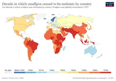 - ↑ "History of Smallpox | Smallpox | CDC". www.cdc.gov. 21 February 2021. Archived from the original on 14 June 2020. Retrieved 21 January 2024.