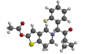 Prasugrel, sold under the brand name Effient and Efient, is a medication used to prevent blood clots in people with acute coronary syndrome (ACS) who getting percutaneous coronary intervention (PCI).[2] It is used together with aspirin.[2] It is taken by mouth.[2]