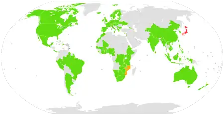 As of 2018, numerous countries have approved the use of PrEP for HIV/AIDS prevention, including the United States, South Korea,[40] France, Norway,[41] Australia,[42] Israel,[43] Canada,[43] Kenya, South Africa, Peru, Thailand, the European Union[44][45] and Taiwan.[46]