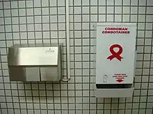 Consistent condom use reduces the risk of heterosexual HIV transmission by about 80% over the long-term.[21] Where one partner of a couple has HIV infection, consistent condom use results in rates of HIV infection for the uninfected person below 1% per year.[22] Some data support the equivalence of internal condoms to latex condoms, but the evidence is not definitive.[23] As of January 2019, condoms are available inside 30% of prisons globally.[24] Use of the spermicide nonoxynol-9 may increase the risk of transmission because it causes vaginal and rectal irritation.[25] A vaginal gel containing tenofovir, a reverse transcriptase inhibitor, when used immediately before sex, was shown to reduce infection rates by roughly 40% among African women.[26]