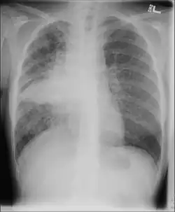 Primary pulmonary coccidioidomycosis is an infection caused by inhalation of Coccidioides immitis.[1]: 314 Once pulmonary symptoms subside, about 30% of women and 15% of men will have allergic skin manifestations in the form of erythema nodosum.[1]: 314 A coccidioidoma is a benign localized residual granulomatous lesion or scar that can remain in the lung's tissues following primary pulmonary coccidioidomycosis.[2]