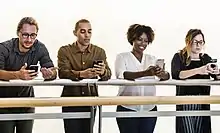 Forms of technology addiction have been considered as diagnoses since the mid 1990s.[3] In current research on the adverse consequences of technology overuse, "mobile phone overuse" has been proposed as a subset of forms of "digital addiction" or "digital dependence", reflecting increasing trends of compulsive behavior among users of technological devices.[4] Researchers have termed these behaviors "smartphone addiction" and "problematic smartphone use", as well as referring to use of non-smartphone mobile devices (cell phones).[5]