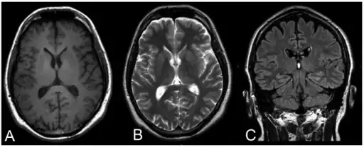 Progressive myoclonic epilepsy type 1-a,b) MRI c) FLAIR | |
