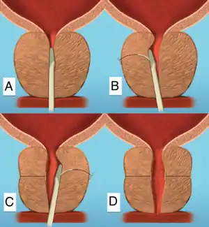 This procedure is done through cystoscopy and it consists on the placement of an implant that compress the lateral lobes of the prostate that cause the obstruction, dilating the prostatic urethra.[2] This procedure can be done under local anesthesia in an outpatient consultation.[3]