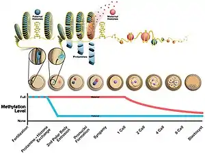 - 1 2 Jenkins TG, Carrell DT (2012). "Dynamic alterations in the paternal epigenetic landscape following fertilization". Frontiers in Genetics. 3: 143. doi:10.3389/fgene.2012.00143. PMC 3442791. PMID 23024648.