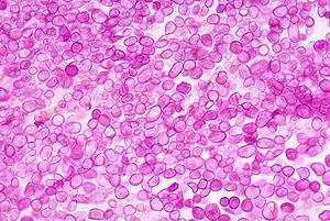 - Photomicrograph of Prototheca wickerhamii infection in a human. Note the floret-like arrangements. Hematoxylin and eosin stain.
