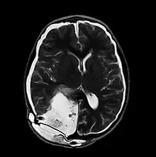 A pseudomeningocele is an abnormal collection of cerebrospinal fluid (CSF) that communicates with the CSF space around the brain or spinal cord. In contrast to a meningocele, in which the fluid is surrounded and confined by dura mater, in a pseudomeningocele, the fluid has no surrounding membrane, but is contained in a cavity within the soft tissues.