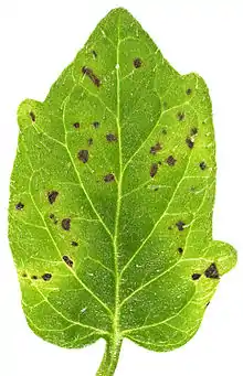 - ↑ Roberts R, Mainiero S, Powell AF, Liu AE, Shi K, Hind SR, et al. (2019). "Natural variation for unusual host responses and flagellin mediated immunity against Pseudomonas syringae in genetically diverse tomato accessions". New Phytologist. 223 (1): 447–61. doi:10.1111/nph.15788. PMID 30861136.