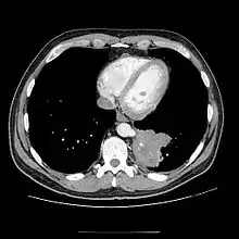 • Since it is enveloped in its own pleural sac, it rarely gets infected so almost always presents as a homogeneous soft tissue mass.