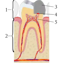 - ↑ Cox CF, Sübay RK, Ostro E, Suzuki S, Suzuki SH (January 1996). "Tunnel defects in dentin bridges: their formation following direct pulp capping". Operative Dentistry. 21 (1): 4–11. PMID 8957909.
