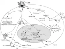 As part of the inflammatory response, ATP activates the P2RX7 receptor, triggering a drop in intracellular potassium levels and the formation of inflammasomes