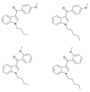 RCS-4, or 1-pentyl-3-(4-methoxybenzoyl)indole, is a synthetic cannabinoid drug sold under the names SR-19, BTM-4, or Eric-4 (later shortened to E-4), but originally, OBT-199.