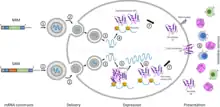 Various methods have been developed to overcome these delivery hurdles. The method of vaccine delivery can be broadly classified by whether mRNA transfer into cells occurs within (in vivo) or outside (ex vivo) the organism.[58][3]