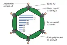 The double-stranded (ds)RNA viruses represent a diverse group of viruses that vary widely in host range (humans, animals, plants, fungi,[lower-alpha 2] and bacteria), genome segment number (one to twelve), and virion organization (Triangulation number, capsid layers, spikes, turrets, etc.). Members of this group include the rotaviruses, which are the most common cause of gastroenteritis in young children, and picobirnaviruses, which are the most common virus in fecal samples of both humans and animals with or without signs of diarrhea. Bluetongue virus is an economically important pathogen that infects cattle and sheep. In recent years, progress has been made in determining atomic and subnanometer resolution structures of a number of key viral proteins and virion capsids of several dsRNA viruses, highlighting the significant parallels in the structure and replicative processes of many of these viruses.[2]