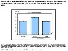 There are significant disparities in health outcomes between the five racial groups recognized by the U.S. Census. These health disparities are in part caused by different levels of income across the five groups recognized by the U.S. Census.[14] There are also notable differences in access to healthcare and the quality of healthcare received by those who identify with different racial categories.