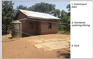 Basic configuration of domestic rainwater harvesting system in Uganda.[1]