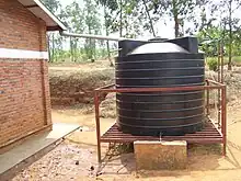 Rainwater harvesting tank in Rwanda.