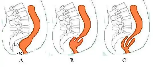 • poor posterior rectal fixation, resulting in loss of posterior fixation of the rectum to the sacral curve[5]