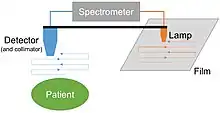 Cassen's original rectilinear scanner used calcium tungstate (CaWo4) crystal as the radiation detector. Later systems used a Sodium iodide (NaI) scintillator, as in a gamma camera.[7] The detector must be connected by mechanical or electronic means to an output system. This could be a simple light source over photographic film, dot matrix printer, oscilloscope or television screen.[8][9][10]