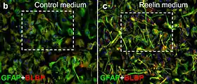 - ↑ Müller MC, Osswald M, Tinnes S, Häussler U, Jacobi A, Förster E, Frotscher M, Haas CA (April 2009). "Exogenous reelin prevents granule cell dispersion in experimental epilepsy". Experimental Neurology. 216 (2): 390–7. doi:10.1016/j.expneurol.2008.12.029. PMID 19185570. S2CID 17173306.
