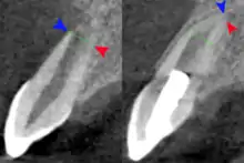 - ↑ Jeeruphan, Thanawan; Jantarat, Jeeraphat; Yanpiset, Kallaya; Suwannapan, Lalida; Khewsawai, Phannarai; Hargreaves, Kenneth M. (October 2012). "Mahidol study 1: comparison of radiographic and survival outcomes of immature teeth treated with either regenerative endodontic or apexification methods: a retrospective study". Journal of Endodontics. 38 (10): 1330–1336. doi:10.1016/j.joen.2012.06.028. ISSN 1878-3554. PMID 22980172.