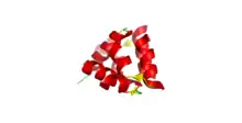 Relaxin interacts with the relaxin receptor LGR7 (RXFP1) and LGR8 (RXFP2), which belong to the G protein-coupled receptor superfamily.[27] They contain a heptahelical transmembrane domain and a large glycosylated ectodomain, distantly related to the receptors for the glycoproteohormones, such as the LH-receptor or FSH-receptor.