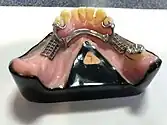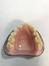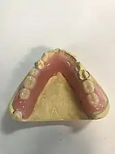 • Major connector (The thick metal "U" in the RPD image above is a lingual bar, a type of major connector)