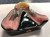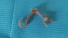 • Indirect retainer (An example is the little metal piece coming off the "U" at a 90 degree angle near the top of the upper photo, which is a cingulum rest on a canine.)