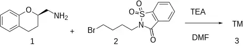 The last step in the synthesis involves the reaction between (R)-2-aminomethylchroman [404337-71-9] (1) and N-(4-bromobutyl)saccharin [103564-59-6] (2).