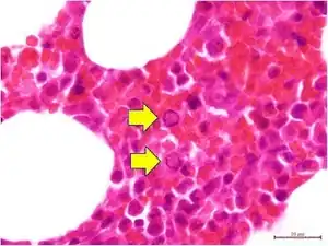Parvovirus B19 intranuclear viral inclusions