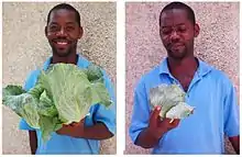 Cabbage grown in excreta-based compost (left) and without soil amendments (right), SOIL in Haiti