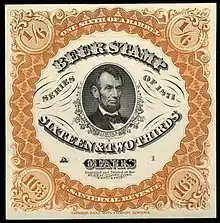 The use of revenue stamps goes back further than that of postage stamps (first used in 1840); the stamps of the Stamp Acts of the 18th century were revenues.[3] Their use became widespread in the 19th century, partly inspired by the success of the postage stamp, and partly motivated by the desire to streamline government operations, the presence of a revenue stamp being an indication that the item in question had already paid the necessary fees. Revenue stamps have become less commonly seen in the 21st century, with the rise of computerization and the ability to use numbers to track payments accurately.