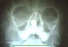A rhinolith is a stone present in the nasal cavity. The word is derived from the roots rhino- and -lith, literally meaning "nose stone". It is an uncommon medical phenomenon, not to be confused with dried nasal mucus. A rhinolith usually forms around the nucleus of a small exogenous foreign body, blood clot or secretion by slow deposition of calcium and magnesium carbonate and phosphate salts. Over time, they grow into large irregular masses that fill the nasal cavity. They may cause pressure necrosis of the nasal septum or lateral wall of nose. Rhinoliths can cause nasal obstruction, epistaxis, headache, sinusitis and epiphora. They can be diagnosed from the history with unilateral foul-smelling blood-stained nasal discharge or by anterior rhinoscopy. On probing, the probe can be passed around all its corners. In both CT and MRI a rhinolith will appear like a radiopaque irregular material. Small rhinoliths can be removed by a foreign body hook. Whereas large rhinoliths can be removed either by crushing with Luc's forceps or by Moore's lateral rhinotomy approach.[1][2]
