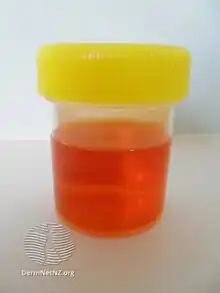 Common side effects include nausea, vomiting, diarrhea, and loss of appetite.[3] It often turns urine, sweat, and tears a red or orange color.[3] Liver problems or allergic reactions may occur.[3] It is part of the recommended treatment of active tuberculosis during pregnancy, though its safety in pregnancy is not known.[3] Rifampicin is of the rifamycin group of antibiotics.[3] It works by decreasing the production of RNA by bacteria.[3]